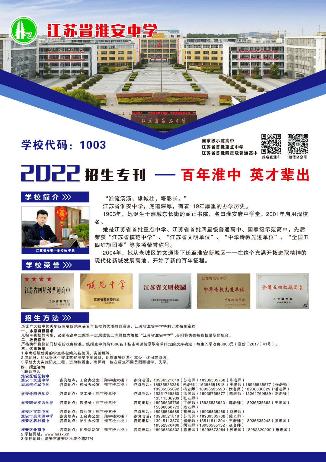 1.即日起至5月31日,我校将安排专人全天负责接受电话和线上咨询。咨询电话:83906041、83996655、83995290、83946830。学校地址:淮安市淮海北路50号。清中网址:www.jsqz.com.cn。微信公众号:江苏省清江中学。