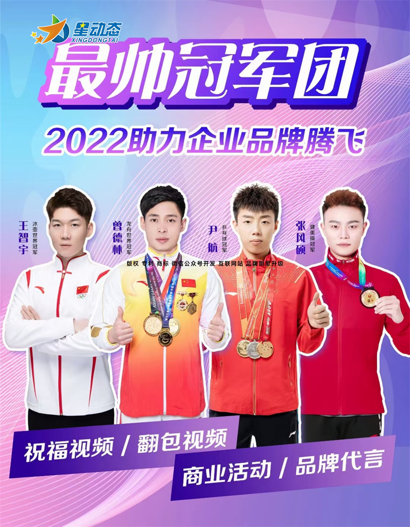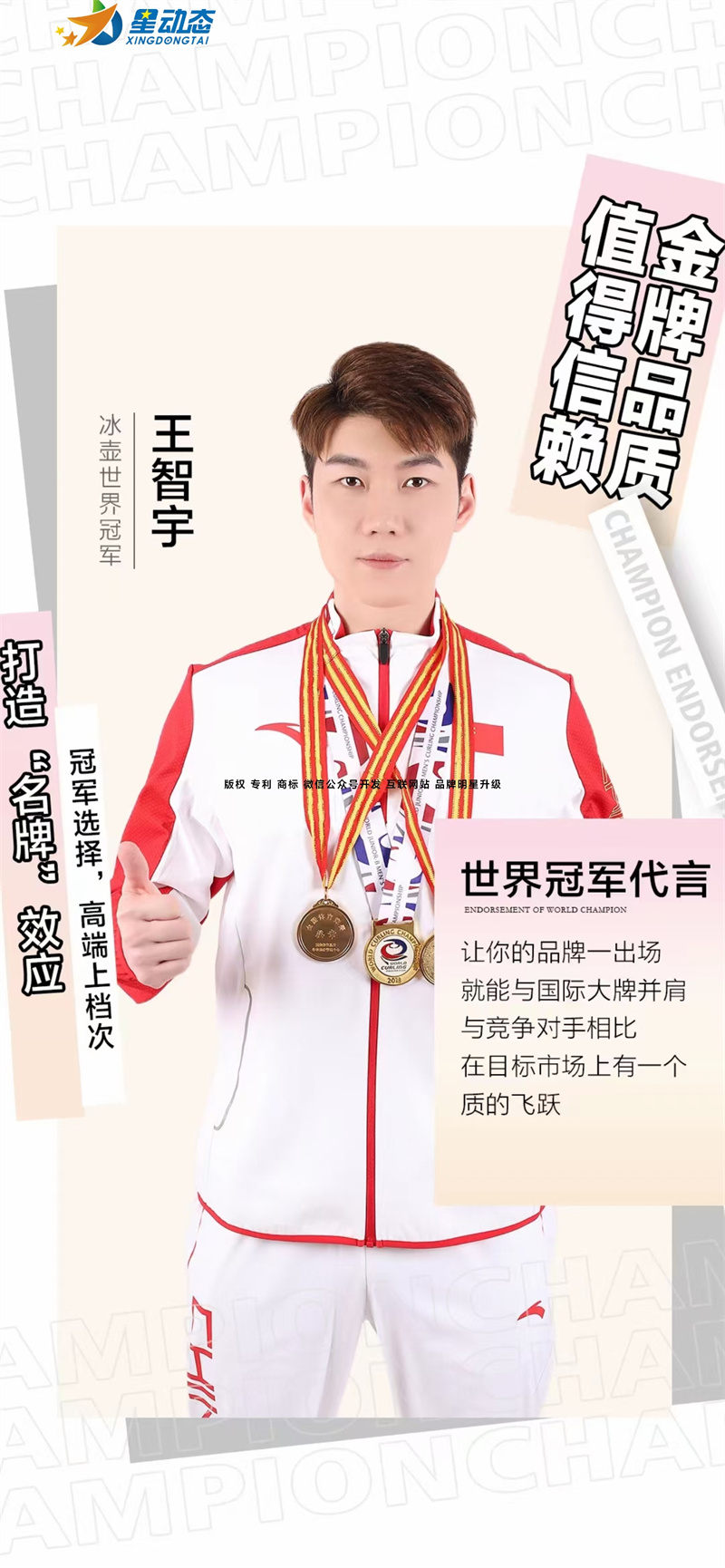 冠军不仅是一种荣誉,更代表一种品质,即领先、突破与追求极致;冠军不仅是一个名次,更是一种精神,代表了不断超越、坚忍不拔。冠军代言已成趋势,这是为品牌赋能的最佳机会!