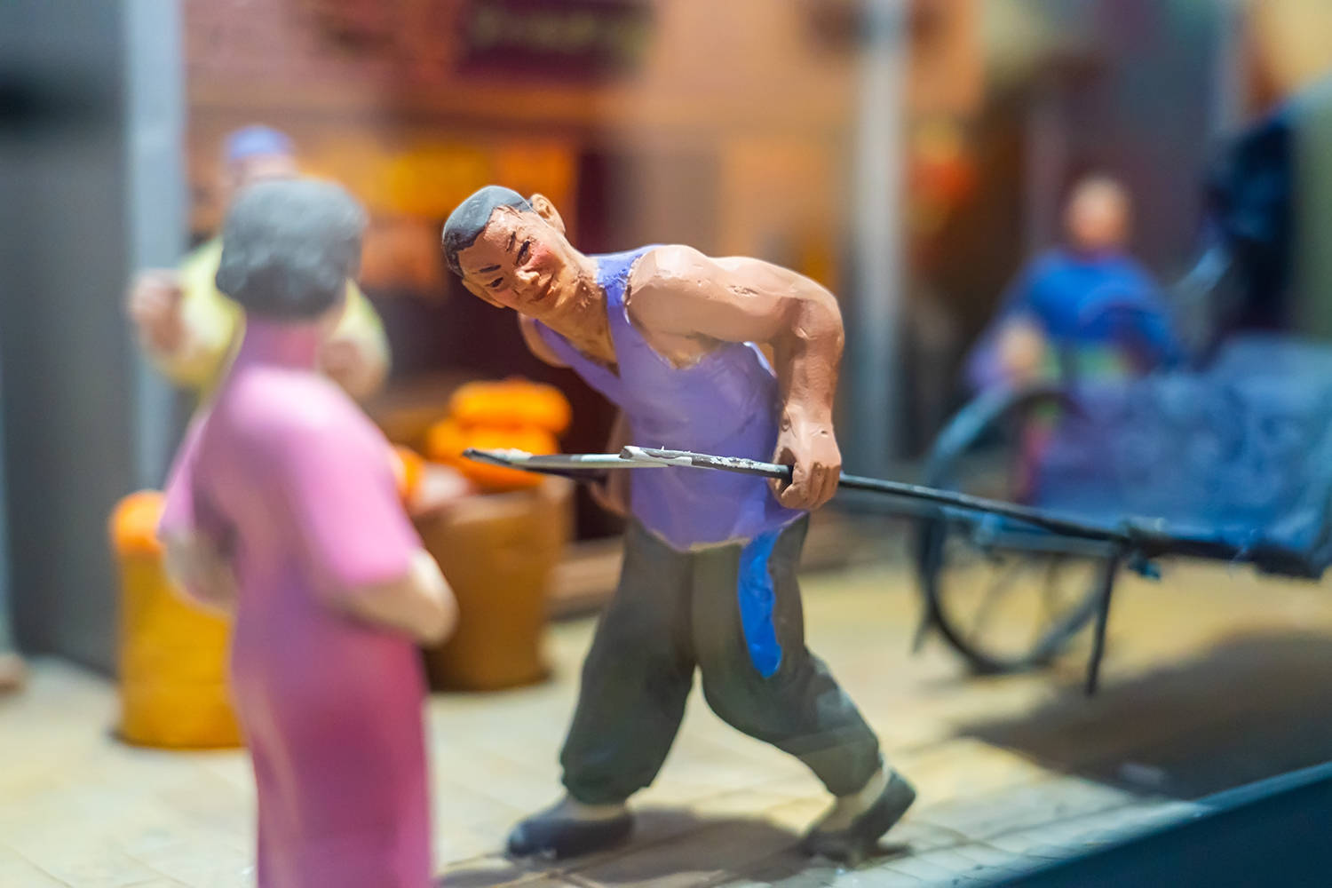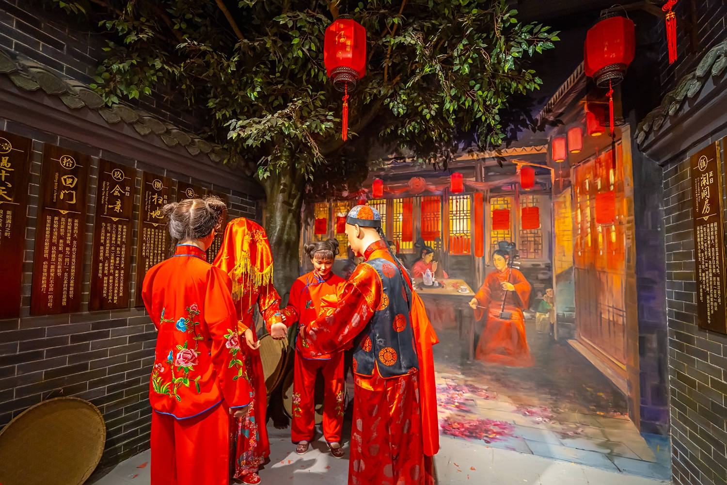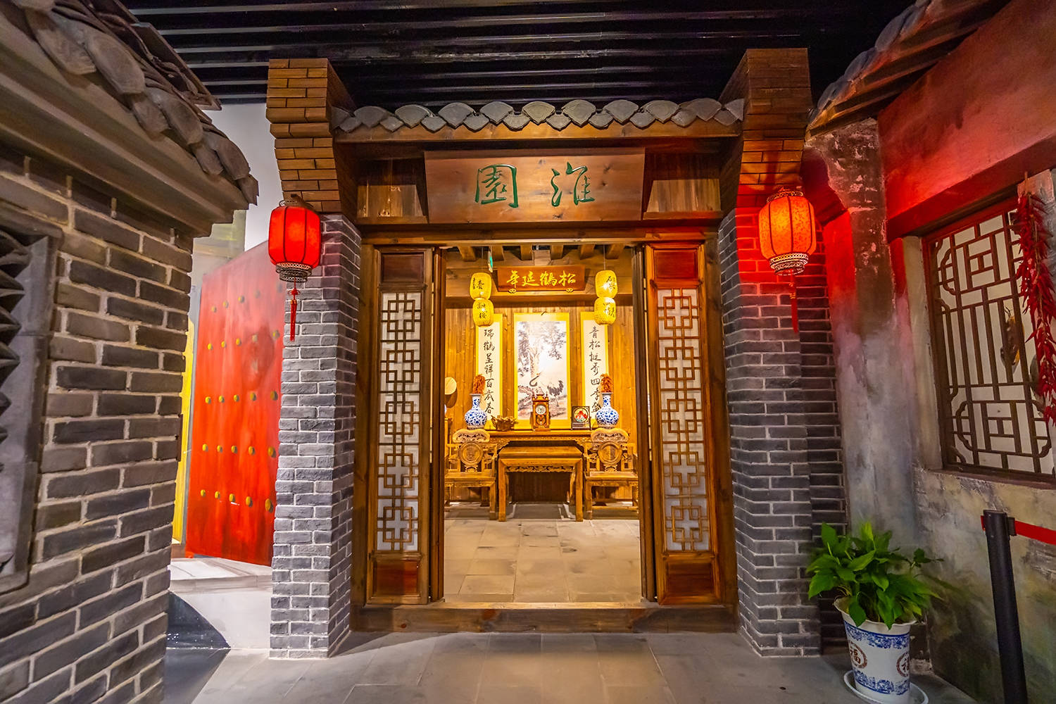在这条仿古街道,你能看到当时清江浦人生活的方方面面。繁忙的码头和车马店,林立的老字号粮行、盐栈,洪门寺豆制品店铺,仁德生中药铺,庆生钱庄,清江浦电报局,鼎大绸缎庄和稻香村食品店,清江浦花街,江北大学堂,老半斋酒楼……柴米油盐、婚丧嫁娶都用了非常真实的雕塑和场景进行展现。