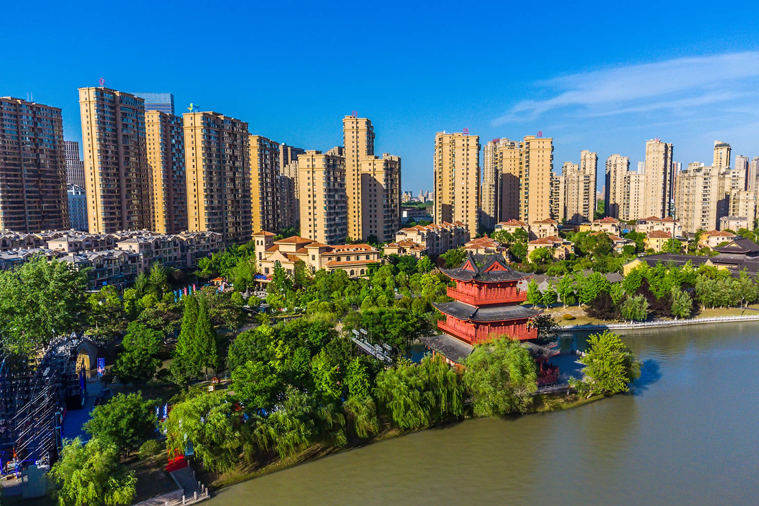 而另一座标志性建筑国师塔,就在清江浦码头的南岸。这座宝塔便是为纪念顺治皇帝的老师、清代名僧玉琳国师而复建的,可以乘坐电梯到达最高层俯瞰运河两岸的景色。